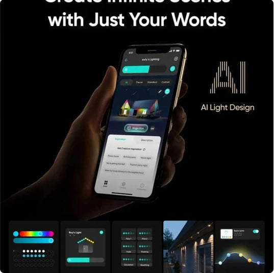 Have complete control at your fingertips with our intuitive smartphone app. Illuminate your home with a touch, switch between a spectrum of vibrant colors, and set timers to sync with the rhythm of day and night. Your holidays have never been brighter.