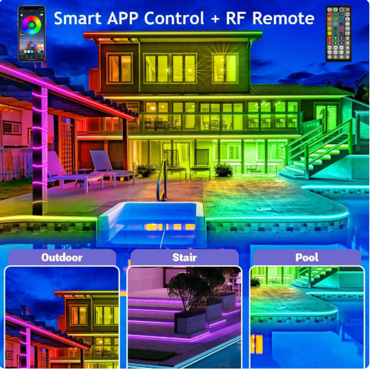 ✅Suitable for indoor and outdoor LED strip lights waterproof, light up your whole house like backyard, Stairs, Rooftop, Kitchen, Cabinet, Porch, Patio, Garden, Garage, Living room, etc.